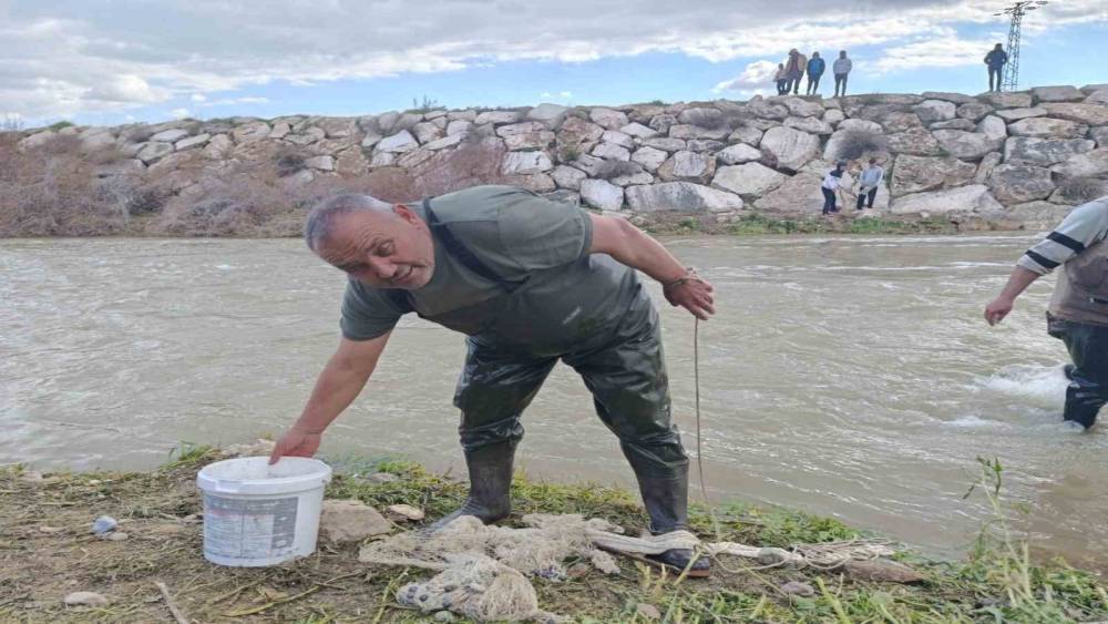 10 yıllık kuraklığın hakim olduğu çayda balık avladılar