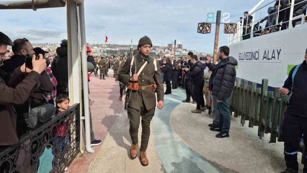 Program, saat 14.30’da Rumeli İskelesi’nde düzenlenen temsili uğurlama töreniyle devam etti. Dönemin asker kıyafetleri giydirilen Mehmetçikler, "Elli Yedinci Alay" isimli feribota binerek dualar eşliğinde limandan ayrıldı. Çanakkale’ye doğru sembolik olarak hareket eden feribot, 57. Alay’ın 111 yıl önceki yolculuğunu bir kez daha hafızalara taşıdı. Süleymanpaşa Su Ürünleri Kooperatifi üyesi balıkçılar da tekneleriyle denizde kortej oluşturarak uğurlamaya eşlik etti.
