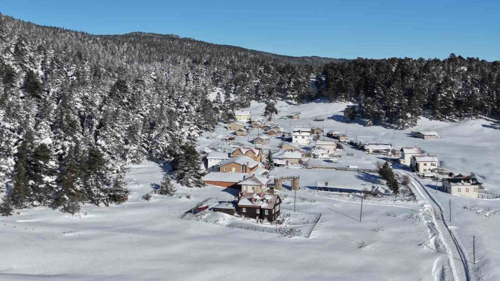 14 köyün yaylasının bir arada bulunduğu Sarıalan’da kış güzelliği