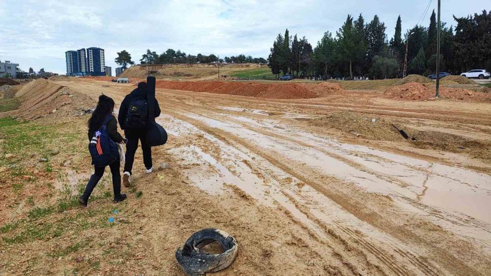 Adana’da 15 yıl önce yapılan Çukurova Güzel Sanatlar Lisesinin yolu bir türlü yapılmayınca öğrenci ve öğretmenler çamur içinde okula gidip gelmek zorunda kaldı. Bazı öğretmenlerin yoldan dolayı araçları bozuldu.Merkez Çukurova ilçesine bağlı Esentepe Mahallesi’nde bulunan Çukurova Güzel Sanatlar Lisesi, 15 yıl önce yapılmasına rağmen hâlâ yol sorunu yaşıyor. Okula ulaşımı sağlayan yolun altyapısının bulunmaması nedeniyle öğretmenler ve öğrenciler, özellikle yağışlı havalarda çamur içinde okula gitmek zorunda kalıyor. Okulda görev yapan öğretmenlerden Ergün Aslantaş, yaşanan sorunun yıllardır çözülmediğini belirterek, "Yaklaşık 15 yıl önce bu okula taşındık. Ancak okul buraya taşınmadan önce de altyapı yoktu. Sanat farklılık ister ama biz sanatı çamurun içinde yapmaya çalışıyoruz. Yol tamamen çamur. Defalarca bildirmemize rağmen ilgilenen olmadı. 21. yüzyılda öğrencilerimize nasıl çağdaşlığı anlatacağız? Yetkililerin sesimizi duymasını istiyoruz" dedi."Yol araçlara zarar veriyor"Öğretmen Mine Saraç ise yolun araçlara da zarar verdiğini ifade ederek, "Okulumuzun yolu inanılmaz derecede kötü. Bu şartlarda nasıl gidip geliyoruz ben de inanamıyorum. Bozuk yol ve çamur nedeniyle aracım arızalandı" diye konuştu."Motosikletle üç kez yolda kaldım"Öğrencilerden Ahmet Lala, yaşadıkları zorlukları şu sözlerle anlattı:"Buranın yolu çok kötü. Normalde motosikletle geliyordum ama artık çıkmıyor. Bu yüzden yürümek zorunda kalıyorum. Çamur yüzünden motosikletle üç defa yolda kaldım. Okula gidip gelmek çok sıkıntılı. En azından çakıl taşı dökseler bile daha iyi olur."Öğretmen ve öğrenciler, yıllardır süren bu sorunun bir an önce çözülmesini ve okul yolunun yapılmasını istiyor.