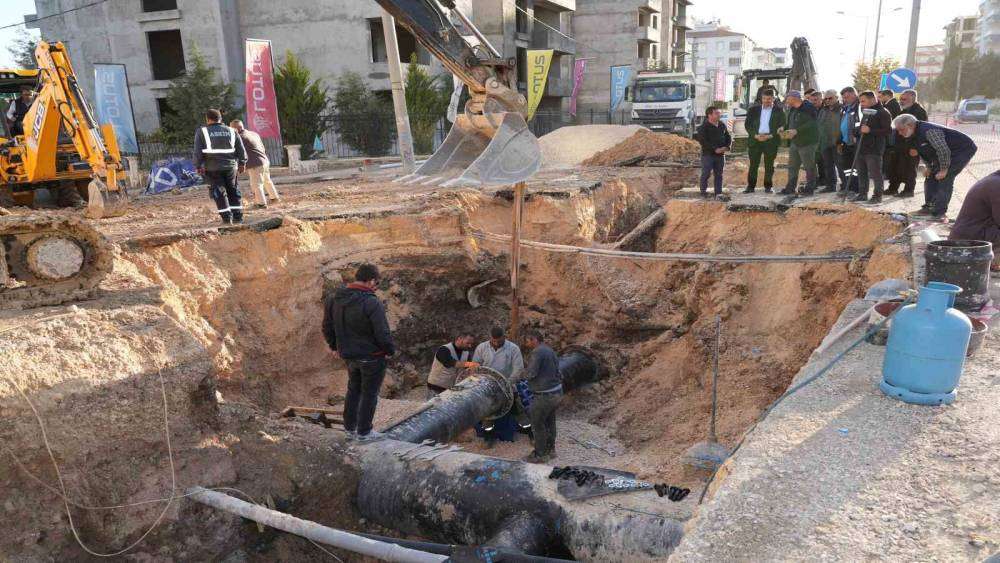 Çalışmaları inceleyen Belediye Başkanı Abdurrahman Tutdere, belediye çalışanlarına kolaylıklar dileyerek 14 mahallenin içme suyu hattının değiştirildiğini söyledi.