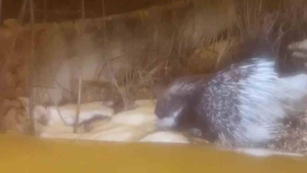 Afrika ve Akdeniz ülkelerinde sıklıkla görülen oklu kirpi, bu kez Sivas’ta görüldü. Cep telefonu ile görüntülenen kirpi, bir süre sonra gözden kayboldu.