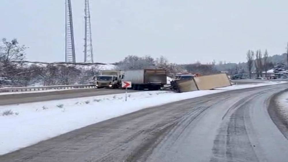 Karabük’te etkili olan kar yağışı nedeniyle ağaçlar devrilip yol kapanırken, kar nedeniyle kayan araçlarda kaza yaptı.Karabük-Bartın kara yolunun 1030 rakımlı Ahmetusta Geçidi’nde etkili olan kar yağışı sırasında, karla kaplanan bir çam ağacı yola devrildi. O sırada yoldan herhangi bir aracın geçmemesi, muhtemel bir kazanın önüne geçti. Devrilen ağaç nedeniyle yol trafiğe kapandı ve karla kaplı güzergahta araç kuyruğu oluştu. Yolda bekleyen sürücülerden biri, aracından çıkardığı motorlu testereyle ağacı kesti. Ağaç parçaları yol kenarına taşınırken, bölgede kar küreme ve tuzlama çalışması yapan Karayolları ekipleri kısa sürede olay yerine gelerek ağacı tamamen kaldırdı. Çalışmaların ardından trafik normale döndü.Kazalar peş peşe geldiSafranbolu ilçesi Kirkille Mahallesi’nde ise kar yağışı nedeniyle kayganlaşan yolda kontrolden çıkan kamyonet kanala düştü. Kazada ölen ya da yaralanan olmadı.Karabük’ü İstanbul ve Ankara’ya bağlayan D-100 kara yolunun Söğütlüçeşme mevkisinde ise refüjü aşarak karşı şeride geçen bir tırın dorselerinden biri devrildi. Aynı güzergahta yaklaşık 50 metre ileride bir kamyonet de yol kenarındaki su tahliye kanalına düştü. Kemikli rampalarında bir tır, önünde seyreden başka bir tıra çarptı. .Kazalarda ölen ya da yaralanan olmazken araçlarda maddi hasar oluştu.