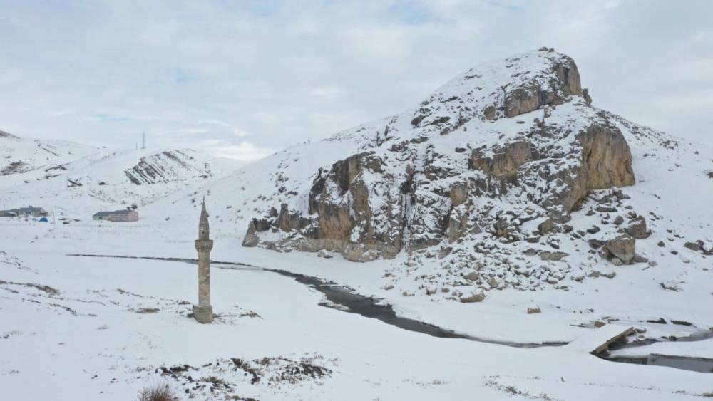 Bölgenin geçmişine ışık tutan yapı, özellikle kış aylarında kar yağışıyla birlikte etkileyici bir görünüme kavuşuyor. Minarenin çevresini saran kar örtüsü ile çekilen baraj sularının oluşturduğu doğal manzara, görenleri hayran bırakıyor.