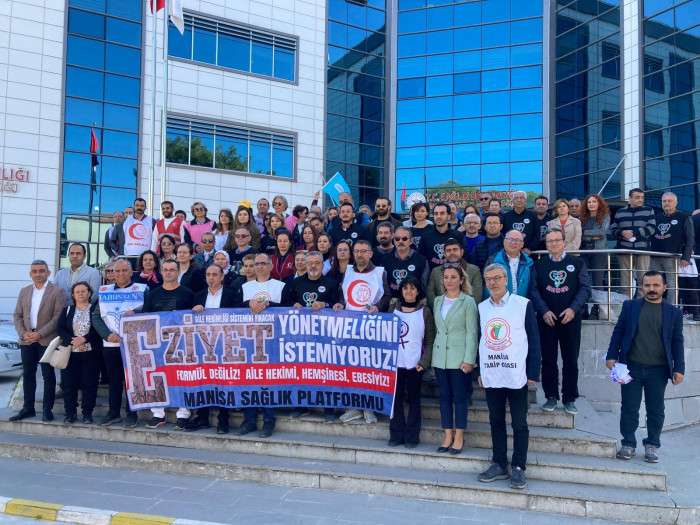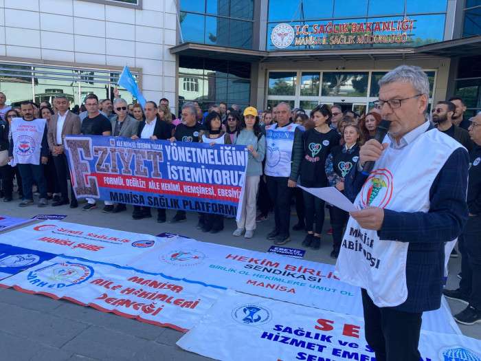 Manisa İl Sağlık Müdürlüğü önünde açıklamalarda bulunan Manisa Tabip Odası Başkanı Uzm. Dr. Hasan Semih Bilgin, Sağlık Bakanlığı'na seslendi. Resmi Gazetede yayımlanan Aile Hekimliği Sözleşme ve Ödeme Yönetmeliğine tepki gösteren Bilgin, aile hekimlerinin 5-7 Kasım arasında iş bıraktığını açıkladı. Sonuç alıncaya kadar mücadeleden vazgeçmeyeceklerini de dile getiren Bilgin çeşitli eylem ve etkinliklerle mücadelelerini sürdüreceklerini söyledi.