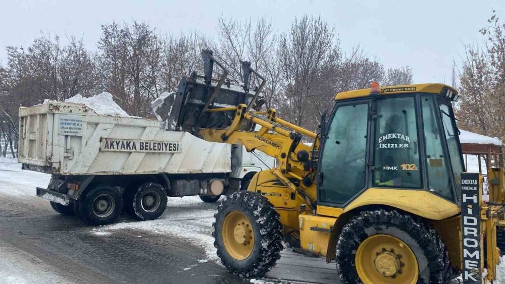 Akyaka Belediyesi karla mücadele ekipleri görev başında