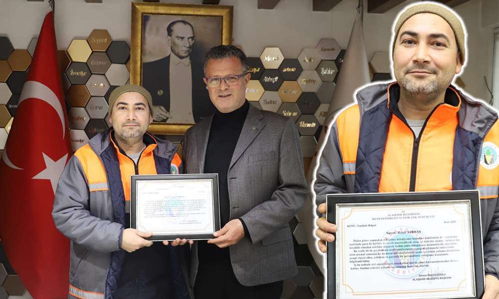 Alaşehir Belediye Başkanı Ahmet Öküzcüoğlu davranışlarında dürüst olan işçisi Raşit Kırbaş’ın bu davranışına kayıtsız kalmayarak, makamında kabul etti. İşçisini tebrik eden Başkan Öküzcüoğlu üzerinde, "Halen görev yapmakta olduğunuz belediyemiz hudutları dahilindeki bir mıntıkada içerisinde para ile birlikte kıymetli materyallerde olan içi dolu bir cüzdanı bulunca hiç tereddüt etmeden sahibine ulaşarak teslim etmiş olduğunuzu memnuniyetle öğrendim. Bu vesile ile de gıyabınızda sıralı amirlerimizle yaptığım görüşmeler neticesinde, sizin normal zamanlarda da mesai arkadaşlarınızla uyum içerisinde çalışma disiplinine azami riayet eden, çalışkan ve gayretli bir personelimiz olduğu konusunda bilgilendirildim. İş bu nedenle sizi emsallerinize örnek olan tüm bu güzel davranışlarından dolayı kutlar, bundan sonraki çalışma hayatınızda başarılar dilerim." yazılı bir teşekkür belgesi verdi.