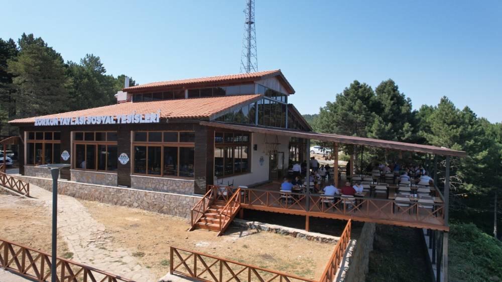 Amanos Dağları’nda yer alan Zorkun Yaylası, Osmaniye Belediyesi’nce düzenlenen birçok etkinliğe ev sahipliği yaparken Şenlik Tepesi’nde bir ilke daha imza atıldı. Çam, sedir ve köknar gibi ağaçlardan oluşan muhteşem doğasına yaraşır bir şekilde Osmaniye Belediyesi tarafından inşa edilen Zorkun Yaylası Sosyal Tesisleri’nin açılışı yapıldı. Doğayla uyumlu ağırlıklı ahşap malzeme kullanılarak tasarlanan tesis, kahvaltı sunumuyla kapılarını vatandaşların hizmetine açtı. Yaklaşık 90 çeşit açık büfe kahvaltı sunumunun yapıldığı tesiste vatandaşlar 1650 metre rakımda dağ ve Osmaniye manzarası eşliğinde kahvaltı keyfi yaşadı.