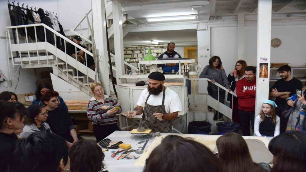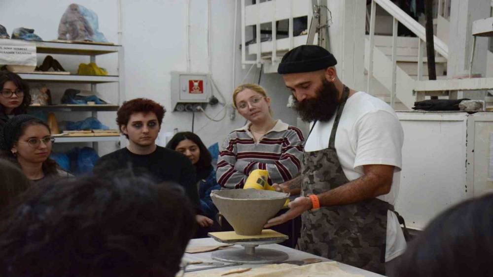 Sunumunun ardından Yıldızbaş, öğrencilerin sorularını yanıtlayarak malzeme ve ekipman seçimi, müşteri ilişkileri ve üretim süreçleri üzerine önerilerde bulundu. Güzel Sanatlar Fakültesi Seramik Döküm Atölyesi’nde uygulamalı seramik çalıştayıyla devam eden etkinlikte Yıldızbaş kendi üretim sürecini öğrencilere göstererek, teknik ipuçları ve sanatsal yaklaşımlarını paylaştı.
