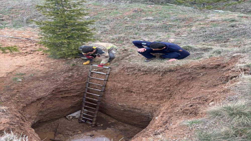 Ankara’nın Akyurt ilçesinde kimliği belirsiz kişilerce, kanuna aykırı şekilde kazılan çukura düşen köpek, itfaiye ekiplerince kurtarıldı.