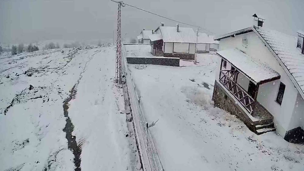 Ankara’nın Beypazarı ilçesinde yüksek kesimler, yağan karla beyaza büründü.