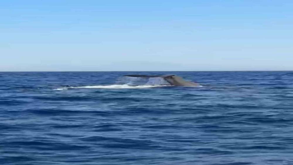 Antalya’nın Manavgat ilçesi Side Limanı’nın 10 mil açığında olta balıkçılığı yapan Alperen Uslu, yaklaşık 15 metre uzunluğunda İspermeçet cinsi balinayı görüntüledi.