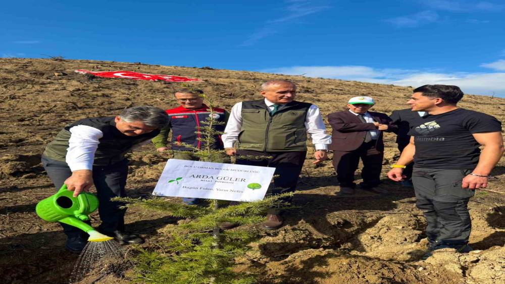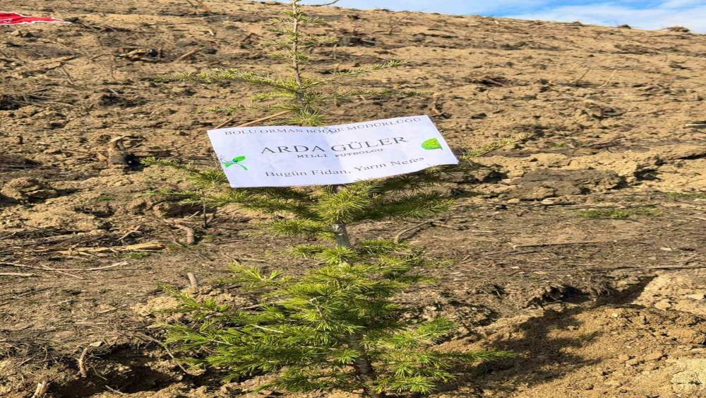 Bolu’da 11 Kasım Milli Ağaçlandırma Günü dolayısıyla düzenlenen etkinlikte, Bolulu milli futbolcu Arda Güler adına fidan dikildi.Mudurnu ilçesine bağlı Delice köyünde, 15 Temmuz günü çıkan orman yangınında zarar gören bölgelerde yeniden hayat filizleniyor. 11 Kasım Milli Ağaçlandırma Günü kapsamında düzenlenen etkinlikte binlerce fidan toprakla buluştu. Etkinlikte Bolulu milli futbolcu Arda Güler adına da fidan dikildi.Arda Güler adına fidanı diken Bolu Valisi Abdulaziz Aydın, "Bugün sevdamız yeşil vatan mottosuyla gerçekleştirdiğimiz 11 Kasım Milli Ağaçlandırma Günü’nde hemşehrimiz, ülkemizin gururu Arda Güler kardeşimiz için de bir fidanı toprakla buluşturduk" dedi.