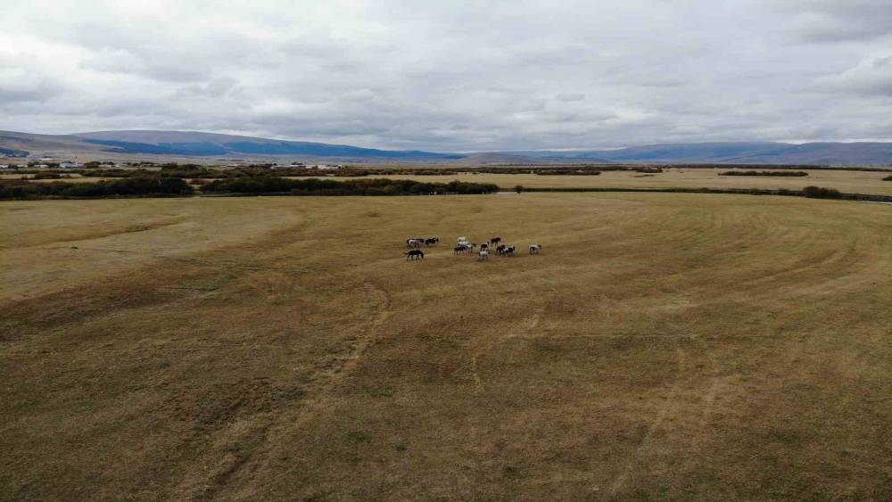 Dron ile çekilen bu eşsiz görüntüler, aynı zamanda Ardahan’ın doğa turizmi potansiyeline de dikkat çekiyor. Bir süre meralarda karınlarını doyuran yılkı atları daha sonra gözlerden kayboldu. Yılkı atlarının Ardahan meralarında yiyecek aramaları dron ile kaydedildi.