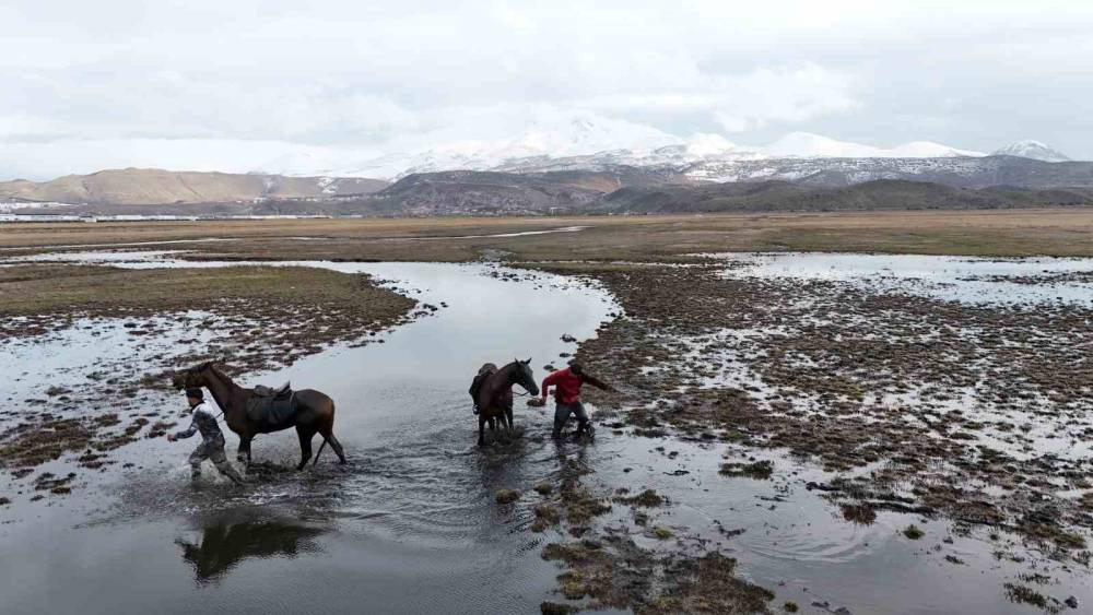 Kayseri’de iki doğaseverin atla olan gezisi görünmeyen bir kaza nedeniyle suda biterken, o anlar dron kamerasına yansıdı.Kayseri’nin yılkı atlarıyla meşhur Hacılar ilçesine bağlı Hürmetçi Mahallesi’nde meydana gelen olayda, sıcak havayı fırsat bilen Vahidullah Muhammedi ve Furkan Kemer atla safariye çıktı. Düz ovaları ile at meraklılarının ilgi odağı haline gelen doğa güzelliği Hürmetçi’de atlarıyla birlikte sazlığa girerek dört nala koşan 2 kişi bir süre sonra atlarla beraber düştü.Suya düşen şahıslar ve atlar olayı yara almadan atlatırken, geçirilen eğlenceli anlar doğa fotoğrafçısı Emin Gürpınar’ın dron kamerasına yansıdı.