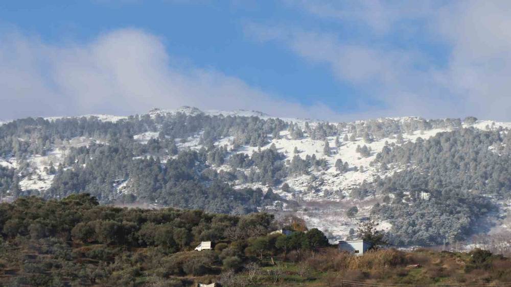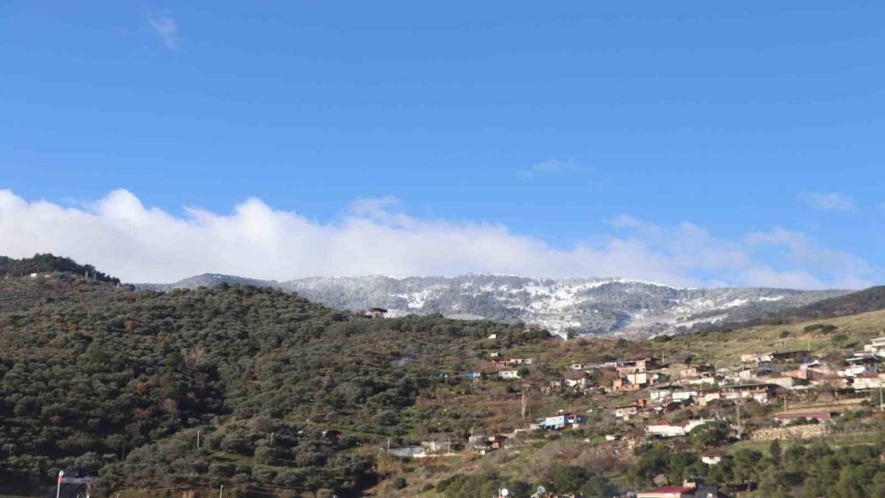 Aydın’da dün etkili olan sağanak yağışlı hava ile birlikte yüksek kesimlerde kar yağışı dağları beyaza bürüdü.