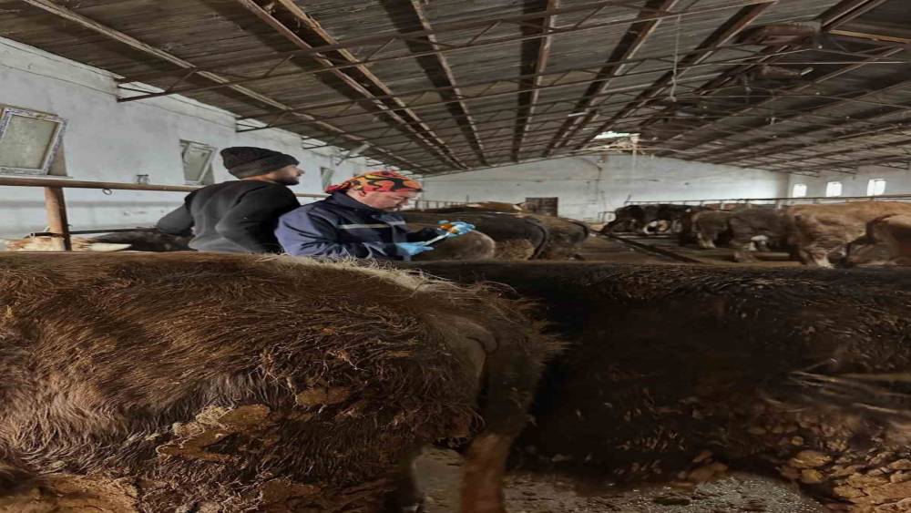 Bayburt’un Aydıntepe ilçesinde büyükbaş hayvanlara yönelik şap aşılama ve buzağı küpeleme çalışmaları, İlçe Tarım ve Orman Müdürlüğü bünyesinde görevli veteriner hekimler tarafından sahada titizlikle yürütülüyor.