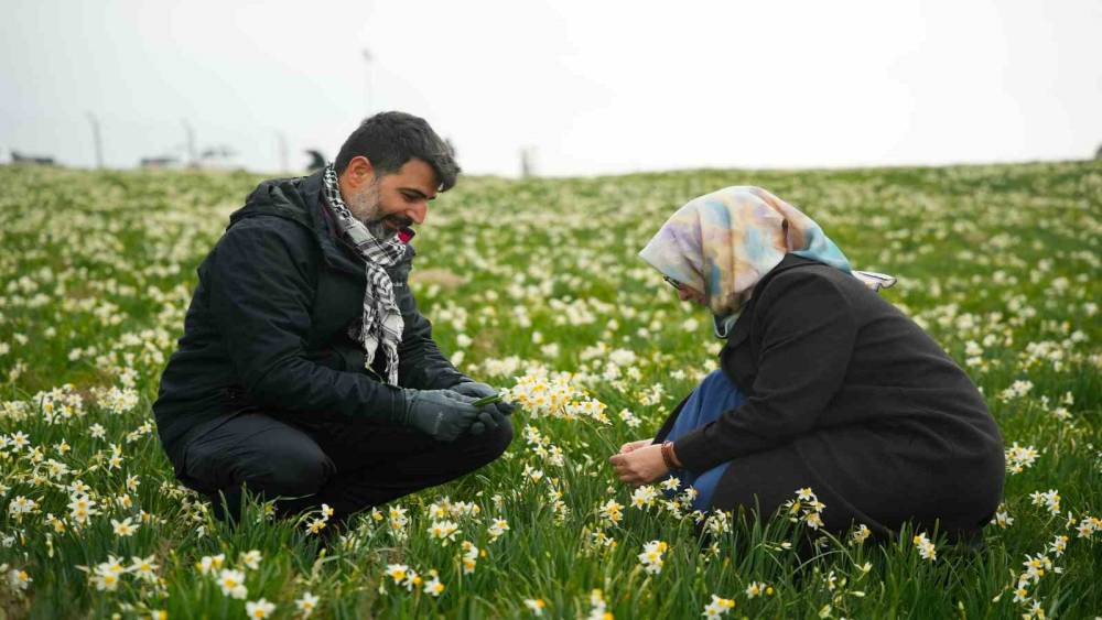 Baharın habercisi nergisler ziyaretçilerin ilgi odağı oluyor