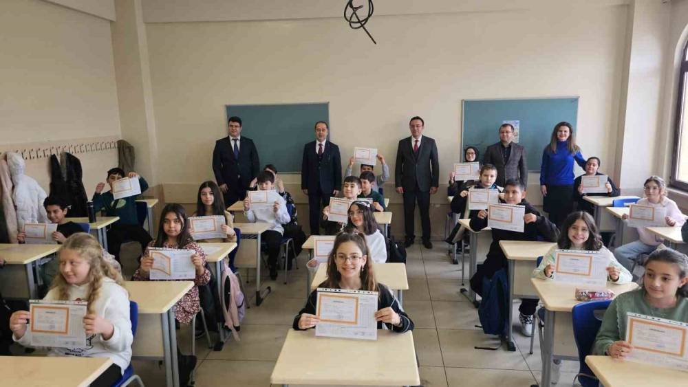 Protokol üyeleri öğrencilere karnelerini dağıttı, başarılarından dolayı tebrik ederek tatil dönemine ilişkin tavsiyelerde bulundu.
