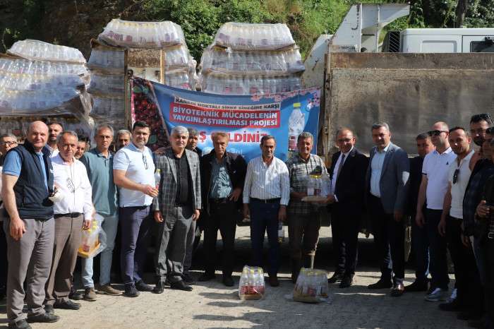 Kiraz yetiştiriciliğinde görülen en önemli tehlikelerinden biri olan kanadı noktalı sirke sineğine karşı Manisa Büyükşehir Belediyesi, Turgutlu’da 8 mahallede elma sirkeli pet şişe dağıttı. Başkan Çetin Akın, “Bundan sonraki 5 yıllık süreç içerisinde de çiftçilerimizin yanında olmaya devam edeceğiz. Tüm üreticilerimize bol ve bereketli hasat diliyorum” dedi.
