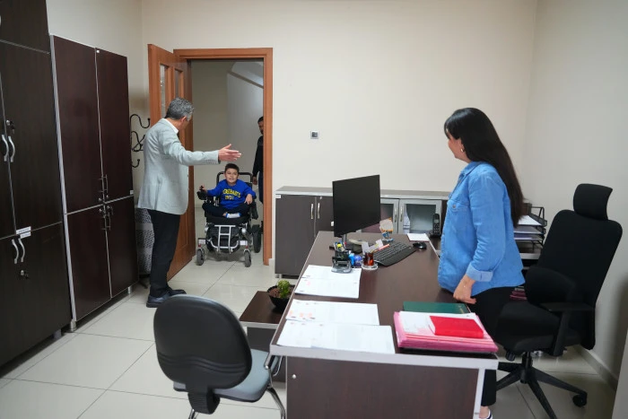 Soma Belediye Başkanı Sercan Okur, DMD (Duchenne Musküler Distrofi) hastalığıyla mücadele eden minik Şenol Berk Çıvgın’ı makamında ağırladı. Fenerbahçe taraftarı olan Şenol Berk’e daha önce söz verdiği formayı hediye eden Başkan Okur, minik Şenol’a moral dolu bir gün yaşattı.