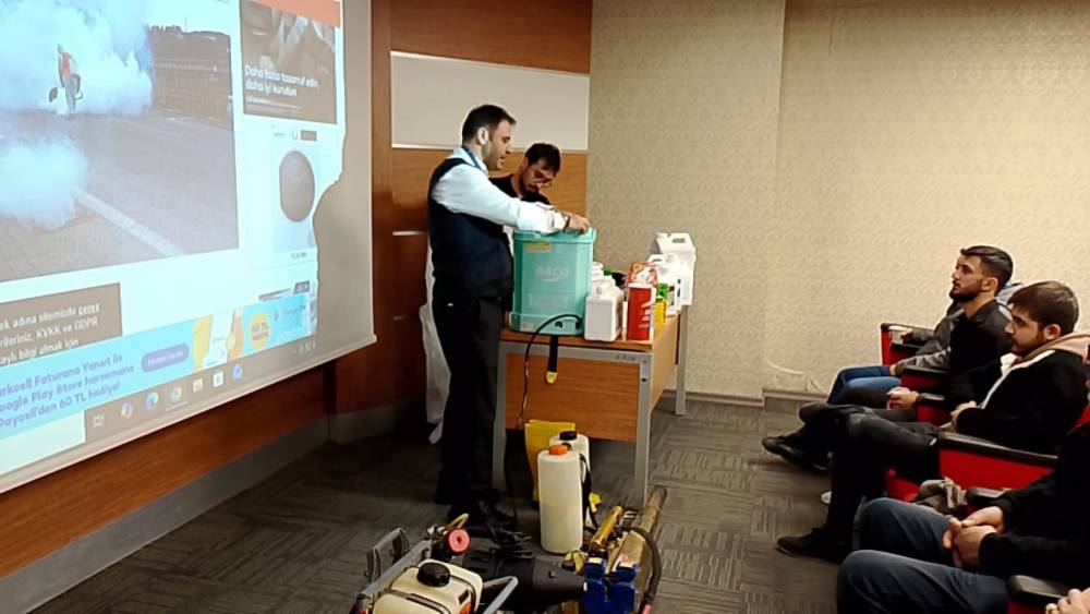 Talas Belediyesi; insan sağlığını merkeze alan belediyecilik anlayışıyla yalnızca bugünü değil, yarını da koruyan çalışmalara imza atmayı sürdürüyor. Halk sağlığını tehdit eden unsurlara karşı bilimsel ve planlı mücadeleyi esas alan Talas Belediyesi, bu alandaki bilgi ve saha tecrübesini artık eğitim kürsüsüne taşıyarak örnek bir rol üstleniyor. İl Sağlık Müdürlüğü koordinasyonunda düzenlenen Biyosidal Ürün Uygulayıcı Sertifika Eğitiminde Talas Belediyesi Veteriner İşleri Müdürlüğü, bu kez öğrenen değil, öğreten tarafta yer aldı.