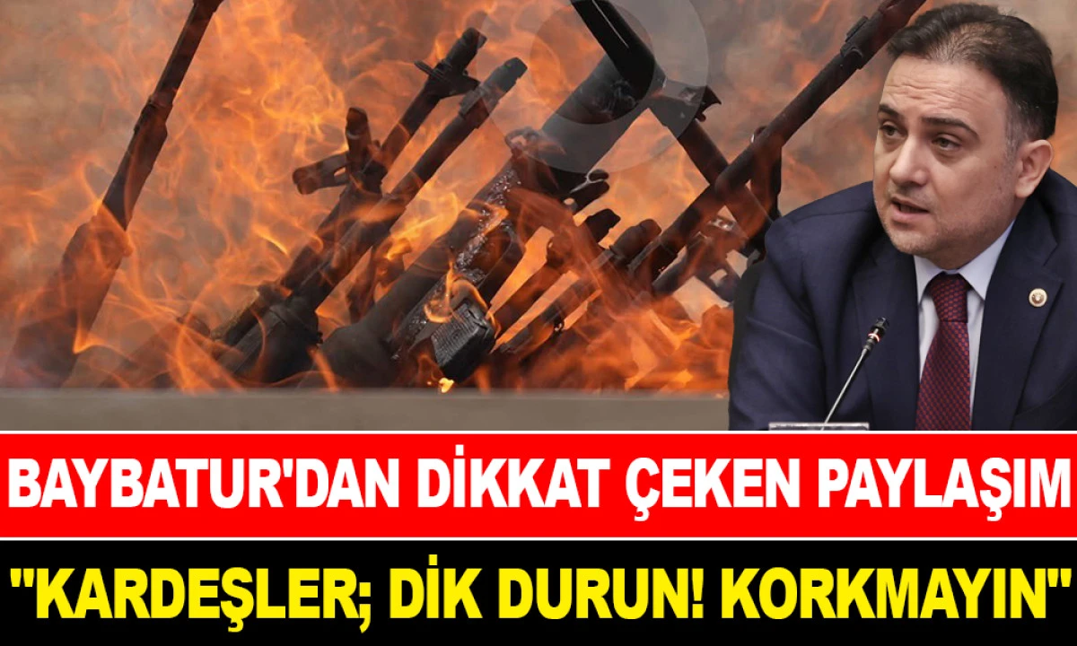 Cumhurbaşkanı Recep Tayyip Erdoğan liderliğinde devam eden istikrarlı yürüyüşün sadece bugünü kurtarmak için değil, yarını inşa etmek için olduğu belirten Baybatur, şu ifadeleri kullandı; "Kardeşler; Dik durun! Korkmayın! Kötülerin gözlerinin taa içine bakın. Bu topraklar geri adım atmaz. Bu millet eğilmez. Bu bayrak asla yere düşmez! Cumhurbaşkanımız Sayın Recep Tayyip Erdoğan’ın liderliğinde; milletimizin iradesiyle kurulan her cümle, atılan her adım, yükselen her ses bir kez daha şunu gösteriyor, bu çağ artık Türkiye’nin çağıdır. Terör örgütlerine, içeriden ve dışarıdan yürütülen kirli oyunlara, algı operasyonlarına rağmen Türkiye dimdik ayaktadır.”