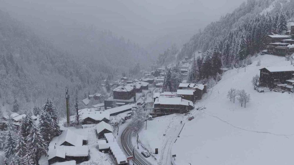 Doğu Karadeniz’in gözde turizm merkezlerinden Ayder Yaylası, kar yağışının etkisi altında bulunuyor. Yaz aylarında yeşilin her tonunu barındıran, kış mevsiminde ise ayrı bir güzelliğe kavuşan Ayder Yaylası, bembeyaz kar örtüsüyle adeta görsel bir şölen sunuyor. Doğal güzelliğiyle her mevsim ziyaretçilerini kendine hayran bırakan Ayder Yaylası, kar yağışı sonrası oluşan manzarasıyla havadan görüntülendi. Ortaya çıkan görüntüler, yaylanın kış turizmindeki cazibesini bir kez daha gözler önüne seriyor.