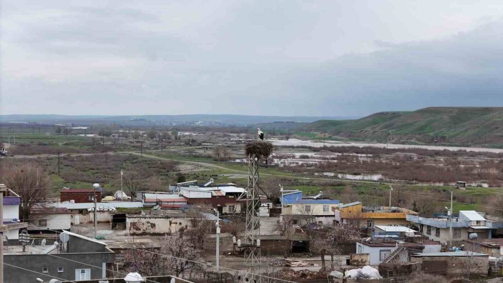 Binlerce kilometre mesafe kateden leylekler yuvalarını Diyarbakır’da kuruyor
