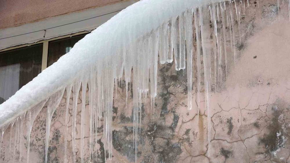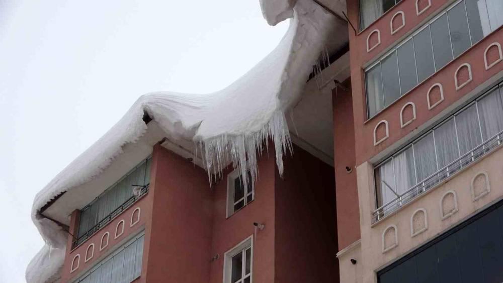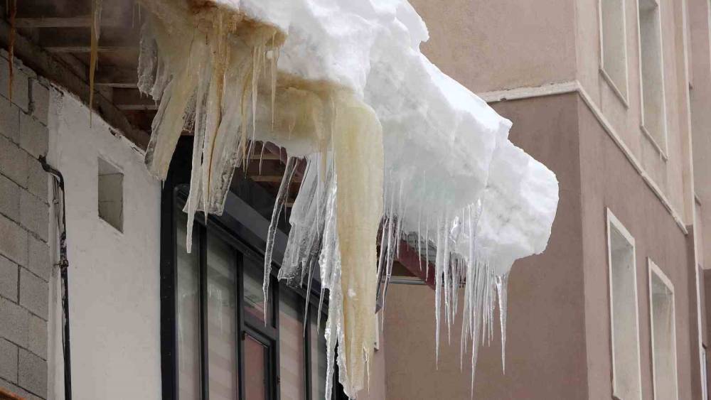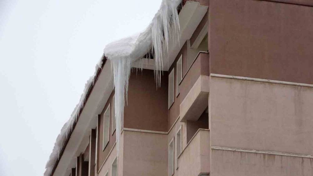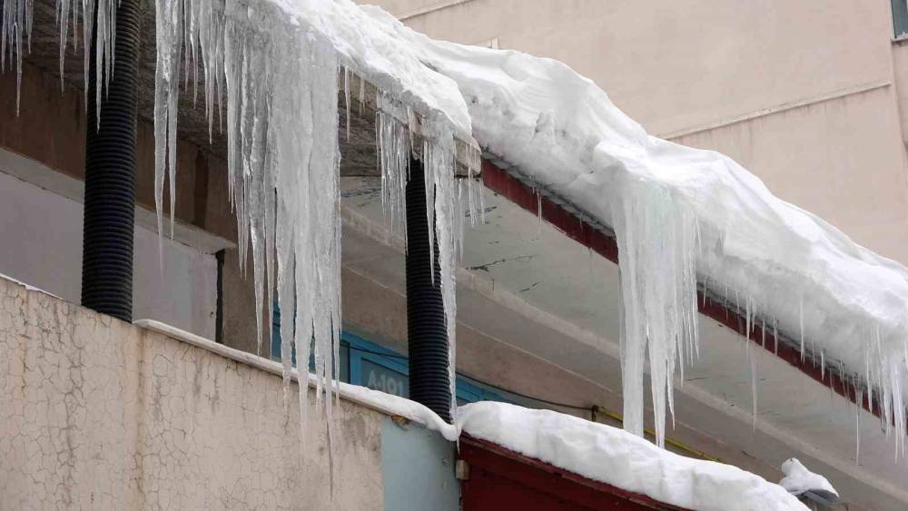 Bölgede tehlikeli hale gelen buz sarkıtları nedeniyle yetkililer vatandaşları çatı altı ve bina kenarlarından uzak durmaları konusunda uyardı.