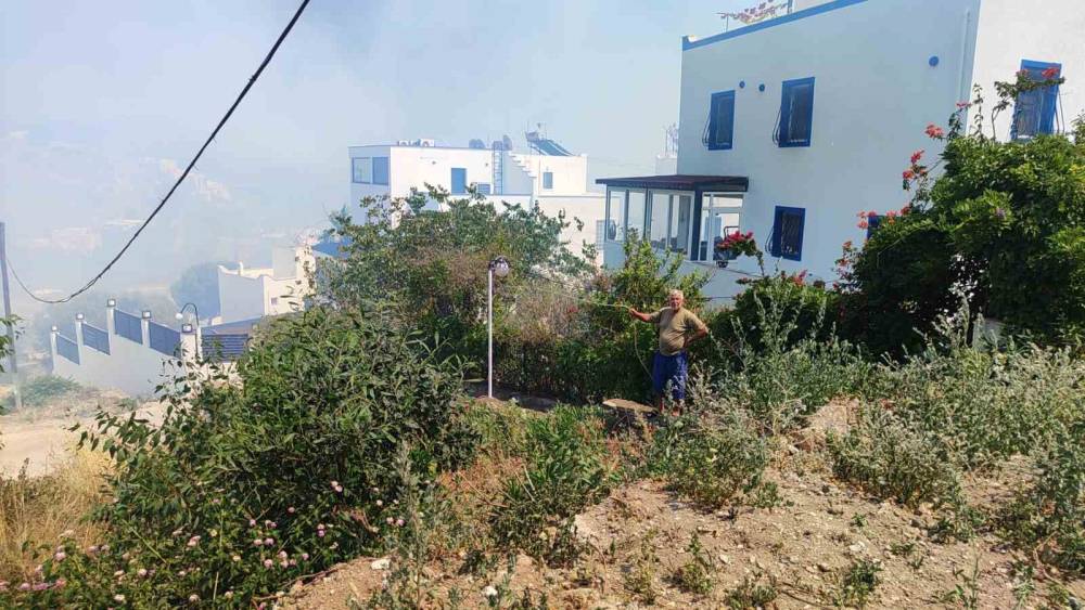 Muğla’nın Bodrum ilçesine bağlı Akyarlar Mahallesi’nde, otluk alanda çıkan yangın rüzgarın etkisiyle kısa sürede büyüyerek yerleşim alanlarına kadar ulaştı. Alevlerin sitelere dayanması mahallede paniğe yol açtı.