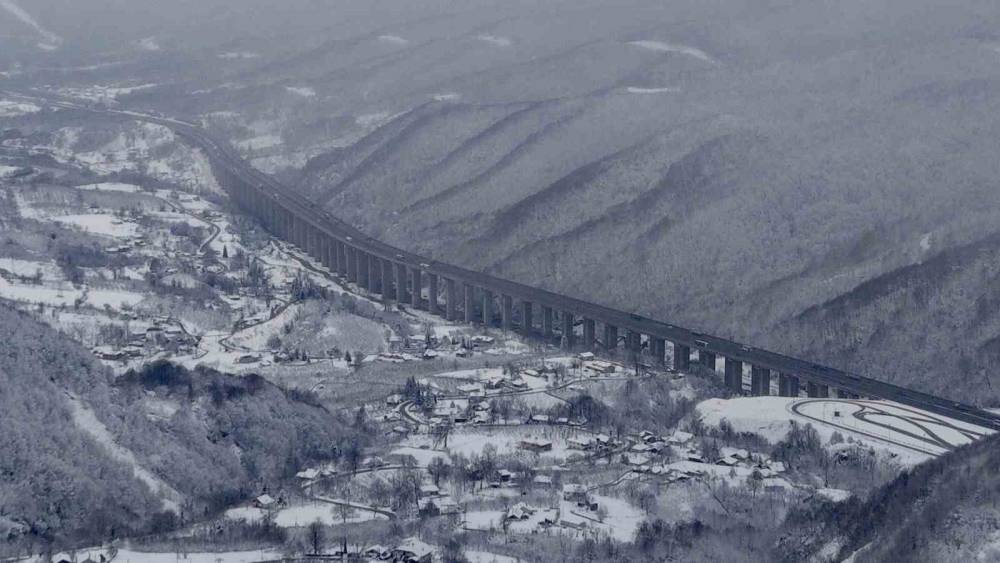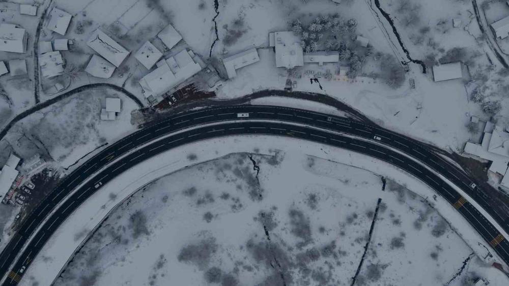 Türkiye’nin önemli geçiş güzergahlarından Bolu Dağı’nda kar yağışının ardından oluşan beyaz örtü havadan görüntülendi.İstanbul ile Ankara arasında ulaşımı sağlayan D-100 kara yolu ve Anadolu Otoyolu’nun Bolu Dağı kesiminde etkili olan yağışın ardından ormanlık alanlar karla kaplandı. Bölgedeki çam ağaçlarının beyaz örtüyle bütünleşmesi ve iki ana ulaşım aksının aynı karede yer aldığı anlar havadan kayda alındı.Ulaşımın normal seyrinde devam ettiği güzergahta, sis ve kar bulutlarının oluşturduğu manzaralar da görüntülere yansıdı. Sürücüler, karla kaplı ormanların arasından geçen güzergahta yolculuklarına devam etti.