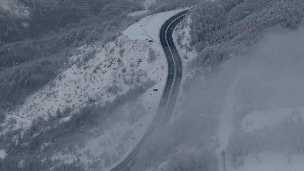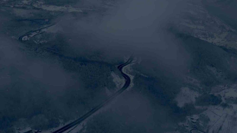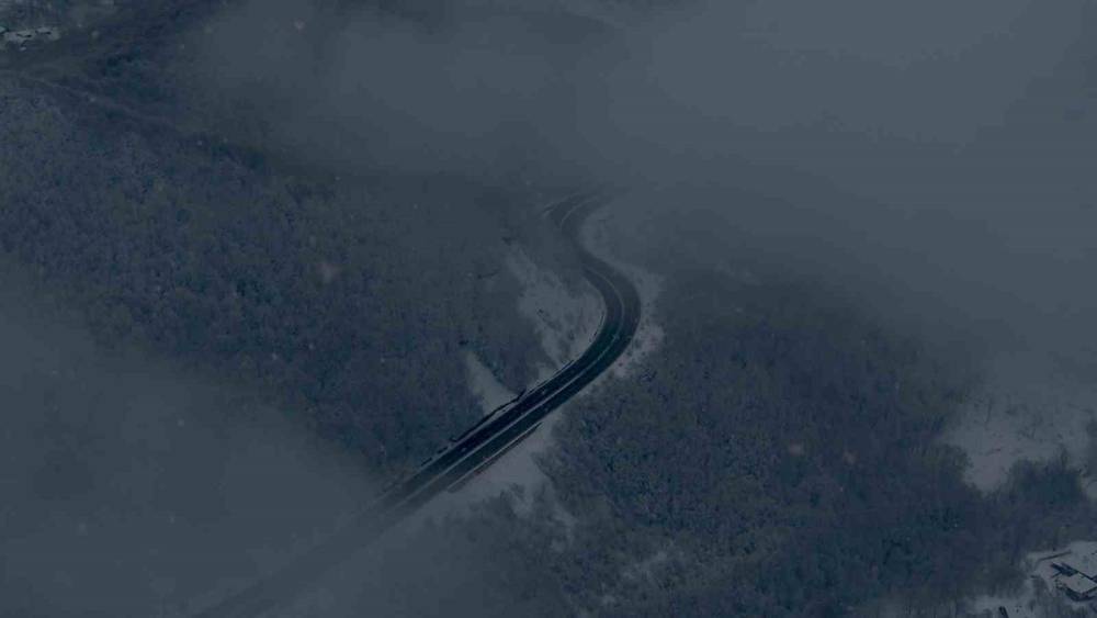 Ulaşımın normal seyrinde devam ettiği güzergahta, sis ve kar bulutlarının oluşturduğu manzaralar da görüntülere yansıdı. Sürücüler, karla kaplı ormanların arasından geçen güzergahta yolculuklarına devam etti.