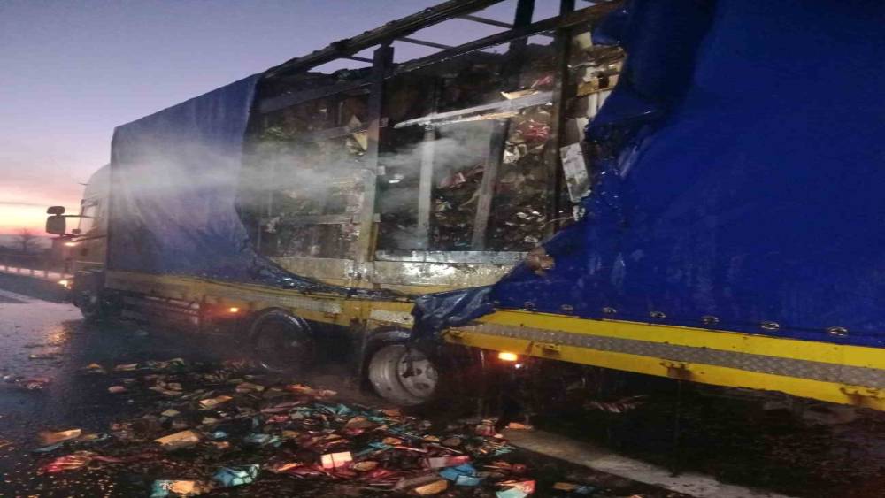 Bolu D-100 Karayolu’nda kuruyemiş yüklü tırın dorsesinde çıkan yangın ekiplerce söndürüldü.