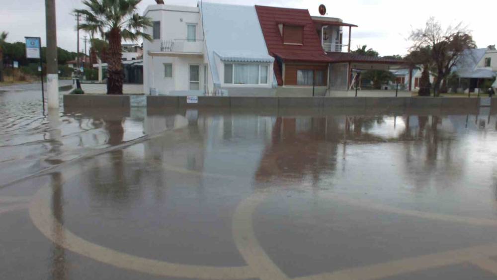 Burhaniye’de sağanak yolları göle çevirirken denizi bulandırdı