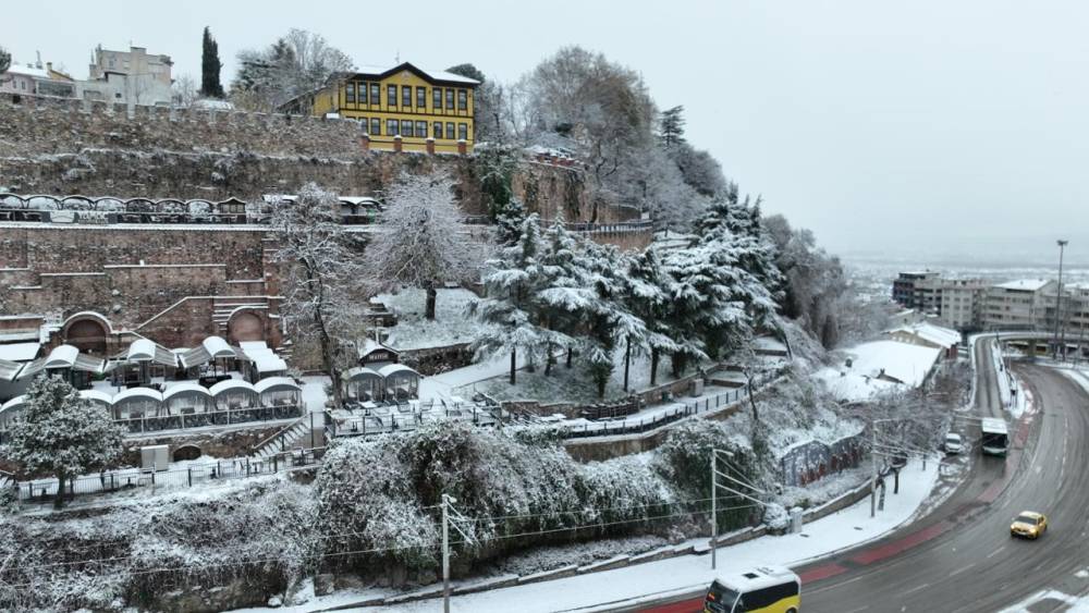Bursa’da sabah 6 sıralarında başlayan yoğun kar yağışı yarım saatte şehri beyaza bürüdü. Bir çok yol kapandı. Şehrin simge noktaları da beyaz örtüsünü giydi.