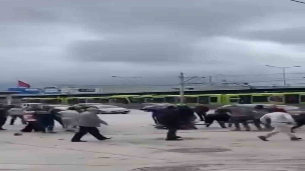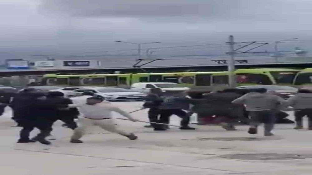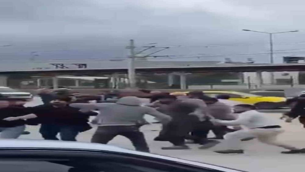 Bursa’da aralarında husumet bulunan iki grup cadde üzerinde karşı karşıya gelince kavgaya tutuştu. Sopaların ve yumrukların havada uçuştuğu kavga anı kameraya yansırken, bazıları kendini korumak için kaskla kavgaya dahil oldu.