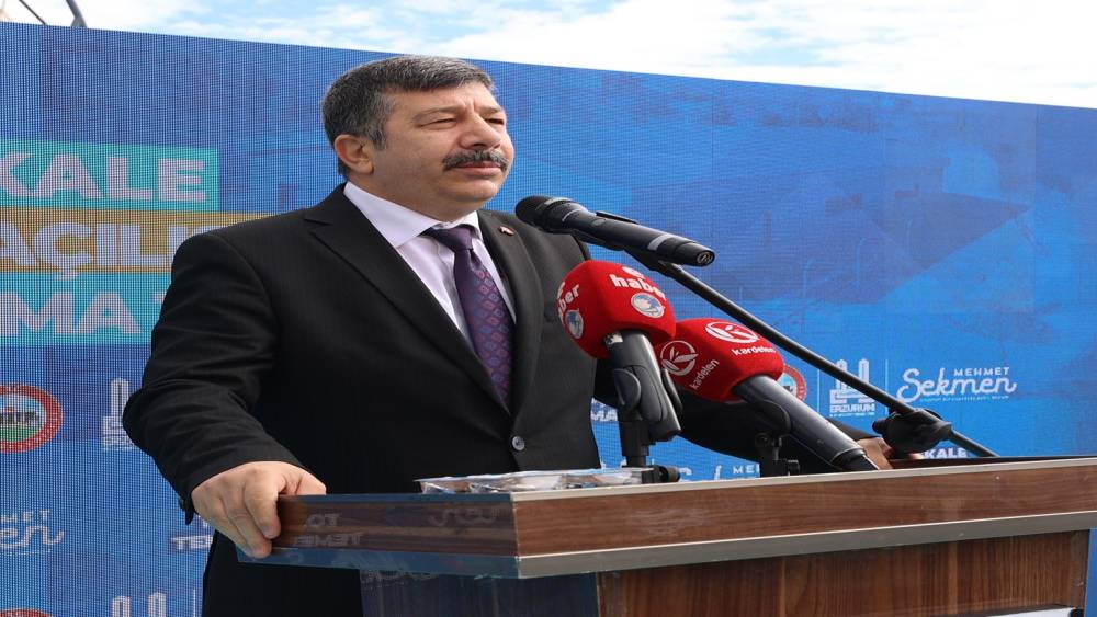 Erzurum Büyükşehir Belediye Başkanı Mehmet Sekmen de, "Bugün burada, gönüllerimizi ısıtan, umutlarımızı tazeleyen, şehrimizin geleceğine yön verecek bir buluşmanın sevincini yaşıyoruz. Aşkale’mizin alın teriyle, gayretiyle, duasıyla, inancıyla büyüyen hikâyesine yeni bir sayfa daha ekliyoruz" dedi. "Bugün, yalnızca açılışlar yapmıyoruz; bugün geleceği inşa ediyoruz. Bugün, sadece temeller atmıyoruz; bugün bu şehrin kaderine imzamızı atıyoruz. Bizim yolumuz, hizmet yoludur. Bizim davamız, taşla değil, gönülle şehir kurma davasıdır" diyen Başkan Sekmen, şöyle devam etti: "Aşkale, tarih boyunca vatanına sadakatiyle, inancına bağlılığıyla, devletine olan sevdasıyla tanınmış bir ilçemizdir. Bu toprakların insanı cefakârdır, vefalıdır, merttir. Bugün açılışını gerçekleştirdiğimiz her proje, bu milletin alın terinin, duasının ve umudunun eseridir. Altyapısından üstyapısına, sosyal tesislerinden çevre düzenlemelerine kadar attığımız her adım, Aşkale’nin yarınlarına bırakılan bir medeniyet mührüdür. Son 11 yılda Aşkale’de hayata geçirdiğimiz projelerle ilçemizin çehresini adeta yeniden şekillendirdik. İlçemize kazandırdığımız modern içme suyu hattı, yıllardır süregelen altyapı sıkıntılarını ortadan kaldırdı. 60 kilometreyi aşan kanalizasyon ve yağmur suyu hattıyla Aşkale artık daha sağlıklı, daha yaşanabilir bir ilçe hâline geldi. Yolları yeniledik, caddeleri düzenledik, kaldırımları baştan sona yeniledik. Bugün Aşkale merkezde ve mahallelerinde 120 kilometreyi bulan sıcak asfalt ve kilitli parke yol çalışmasını tamamlamanın gururunu yaşıyoruz. Bugün kentsel dönüşüm projemizle kapalı otoparkı ve dükkânları bulunan 6 katlı iki büyük bloğun temelini atacağız. Ve yine ilçemizin kültür ve sanat hayatına yeni bir ivme katacak olan Kültür Merkezimizin de temelini atacağız. Konferans ve spor salonu, öğrenci etüt merkezi, fuaye ve kütüphaneyi barındıran Aşkale Kültür Merkezi’miz şimdiden hayırlı olsun. İlçemizin çevre sorunu Aşkale Katı Atık Aktarma İstasyonu ile ortadan kalktı. Nisan ayında tamam projemizle günlük 10 bin ton katı atık düzenli olarak çekiliyor. Katı Atık Aktarma İstasyonu’muzun faaliyete geçmesiyle birlikte ilçemizde atık toplama ve taşıma süreci daha verimli hale geldi. Bakınız hizmette sınır tanımıyoruz. 11 yılda nice grup yolunu tamamladık. Kırsal mahallelerimizin ulaşım konforunu artırmak için stabilize yol yapımlarını aralıksız sürdürüyoruz. Aşkale’ye kazandırdığımız yeni yaşam alanlarıyla sosyal hayatı da canlandırdık. Sayın Cumhurbaşkanımızın yıllardır ifade ettiği bir hakikat var: ‘Biz bu millete efendi olmaya değil, hizmetkâr olmaya geldik’ İşte biz de bu anlayışla yola çıktık. Milletimizin huzuru, refahı ve güvenliği için gece gündüz çalışıyoruz. Yol yapıyoruz, su götürüyoruz, park yapıyoruz, istihdam oluşturuyoruz ama hepsinden önemlisi, gönüller inşa ediyoruz. Bu anlayışla Aşkale’ye kazandırdığımız çok amaçlı sosyal tesislerimiz, gençlerimizin ve kadınlarımızın hizmetindedir. Kadın kooperatiflerimizin üretim alanlarını genişlettik, el emeği ürünlerin ekonomiye kazandırılması için destek sağladık. Gençlik merkezlerimizde evlatlarımızın hem spor yapabilecekleri hem de eğitim desteği alabilecekleri ortamlar oluşturduk. Tarım ve hayvancılığa desteklerimiz de artarak sürüyor. Büyükşehir Belediyesi olarak kırsal mahallelerimizde sulama kanalları açtık, hayvan içme suyu göletleri yaptık. Çiftçilerimize yem desteği, fide ve tohum hibeleriyle üretimin bereketini büyüttük. Çünkü biz biliyoruz ki, bu topraklarda üretmek, bu vatanı yaşatmak demektir. Aşkale’ye kazandırdığımız projelerle birlikte ilçemizin çehresi değişiyor, yaşam kalitesi yükseliyor. Bugün burada açılışını yaptığımız yollar, parklar, tesisler, sosyal alanlar sadece bugünün değil, geleceğin Aşkale’sine hizmet edecek eserlerdir. Bizler biliyoruz ki, hizmet kalıcıdır. Söz uçar, eser kalır. Ve bugün bu topraklara dikilen her temel, yarınlara bırakılacak bir izdir. Fuzûlî’nin dediği gibi: ‘İnsana muhabbet gerek, medeniyetin özü odur’ İşte biz, her hizmetin merkezine sevgiyi, adaleti ve samimiyeti koyuyoruz."