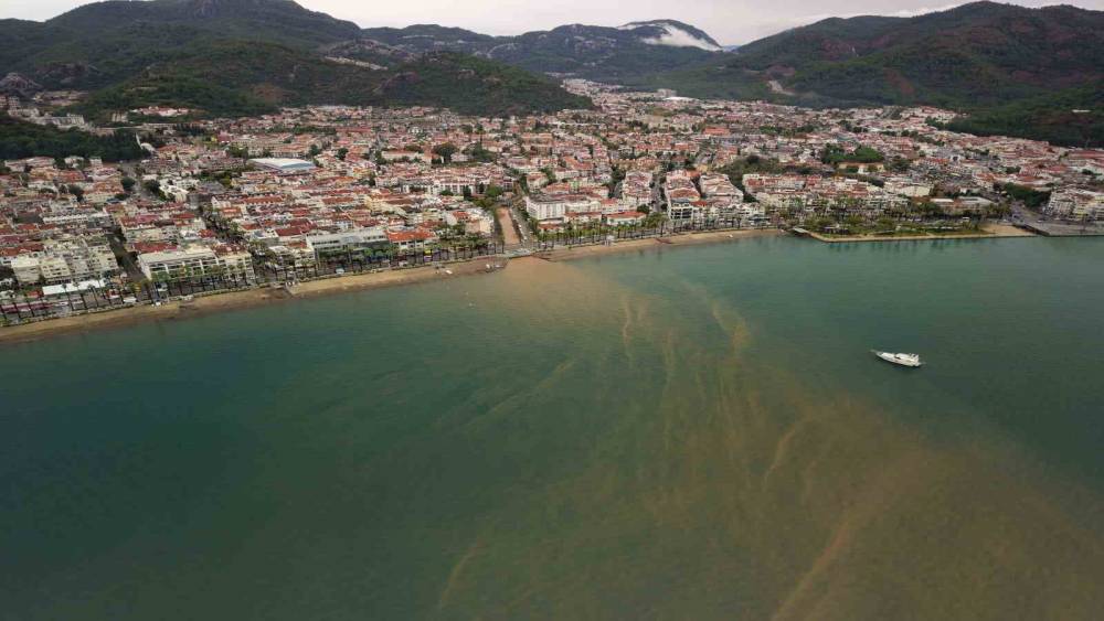 Marmaris’te önceki gece yarısından itibaren etkili olan yağışlar aralıklı olarak devam ederken, ilçede dün şiddetli fırtına sebebiyle dört tekne karaya oturmuş, ağaçlar devrilerek yollara dökülmüştü. Yağışlar, özellikle kırsal mahalleleri etkilerken, yollar ve tarlalarda da yoğun su birikintileri meydana gelmişti. İlçe genelinde bugün sabah saatlerinden itibaren yağış aralıklı olarak etkisini sürdürürken, dereler ve sokaklardaki yağmur suları da denize dökülmeye başladı. Marmaris Kemeraltı Mahallesi Halk Plajı mevkiinde denizle buluşan yağmur suları ise denizi çamur rengine büründürdü. Yağışların ardından çamura rengine bürünen deniz ise drone pilotu Resul Bulguroğlu tarafından havadan görüntülendi. Denizde oluşan renk değişimi net bir şekilde görünürken, derelerin denizle birleştiği noktadaki çamur rengi yoğunluğu dikkat çekti.