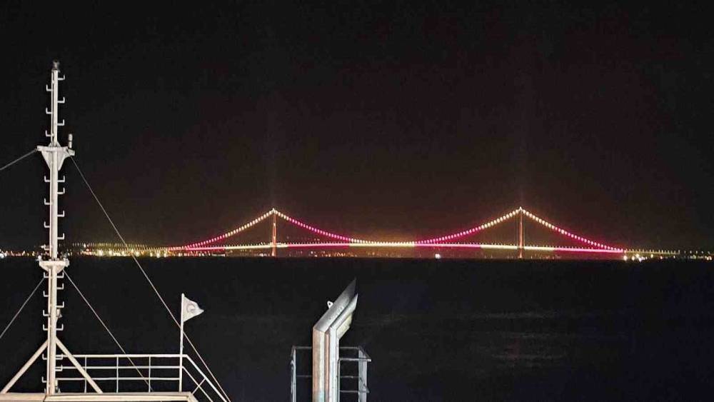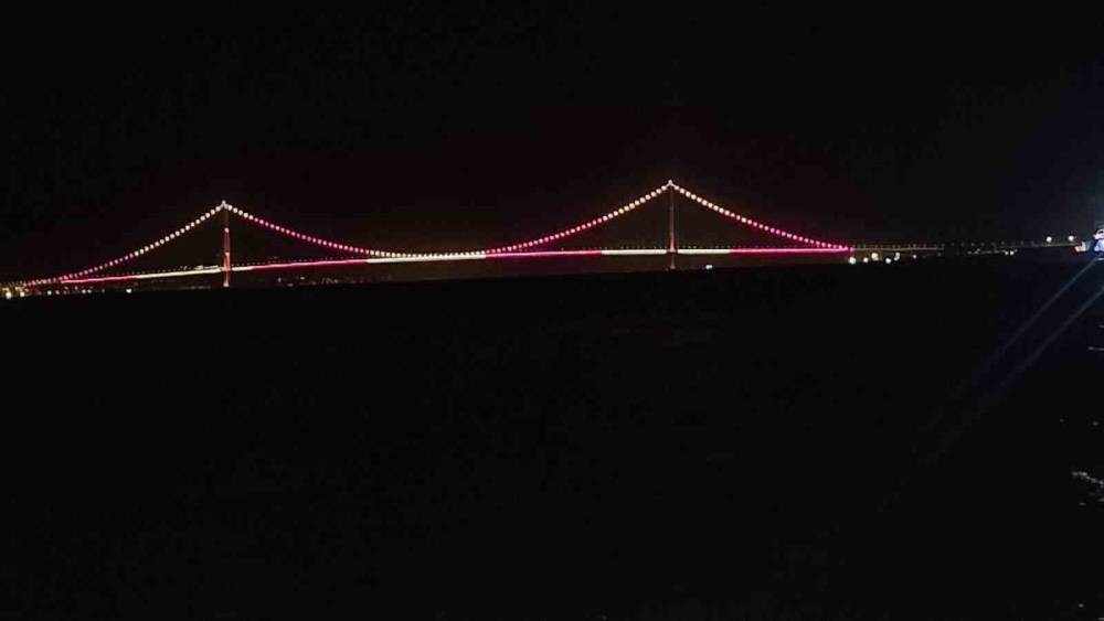 Çanakkale Köprüsü sarı kırmızılı renklerle aydınlatıldı