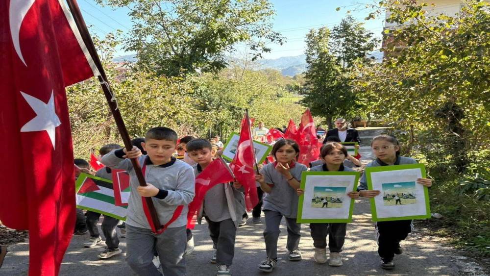 Milli Eğitim Bakanlığı tarafından ülke genelinde yürütülen "Filistin Farkındalık Etkinlikleri" kapsamında düzenlenen programda öğrenciler, Filistin ve Türk bayraklarıyla yürüyüş gerçekleştirdi. Minik ellerde dalgalanan bayraklar, iki milletin ortak vicdanını yan yana taşıdı.