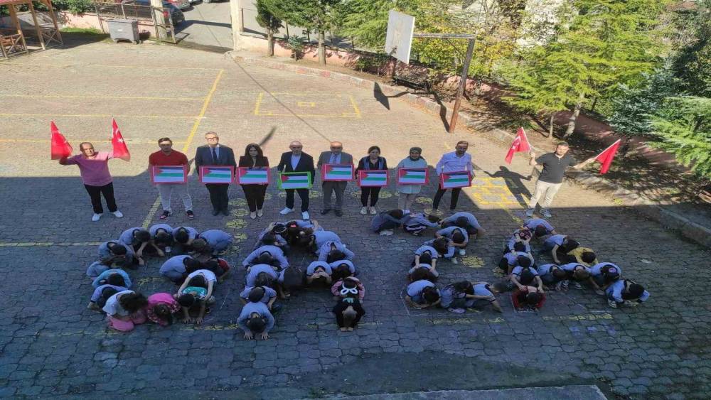 Ordu’nun Çatalpınar ilçesi Kıran Mahallesi İlkokulu öğrencileri, Filistin ve Gazze’de yaşananlara dikkat çekmek amacıyla anlamlı bir etkinlik düzenledi. Bahçede oluşturulan Filistin renkleri ve ‘Gazze’ yazısı, minik yüreklerin barışa uzanan sessiz çağrısına dönüştü.