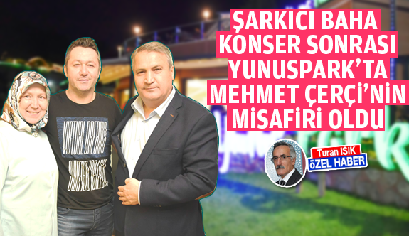 Yunusemre Belediyesi’nin ramazan etkinlikleri programına katılmak üzere Manisa’ya gelen sanatçı Baha, konser sonrasında Belediye başkanı Mehmet Çerçi ve eşi Melek Çerçi’nin davetlisi olarak Yunuspark’ta misafir edildi.
