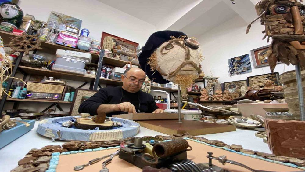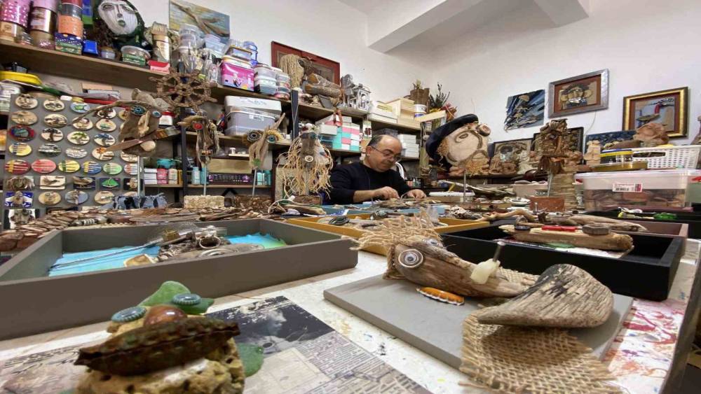 İzmir’in Çeşme ilçesinde 33 yıl esnaflık yapan 64 yaşındaki Nihat Atagöz, deniz kıyısından topladığı odun, taş ve metal parçalarını sanata dönüştürüyor. Karikatür, heykel ve mozaiği birleştiren Atagöz’ün eserleri, dünyanın dört bir yanına ulaşıyor.