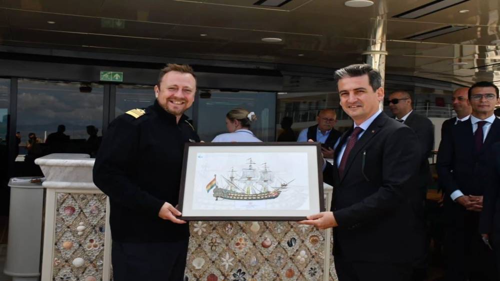 Çeşme Kaymakamı Mehmet Maraşlı, Ulusoy Limanı’ndaki "Four Seasons Yacht" kruvaziyer gemisini ziyaret etti.