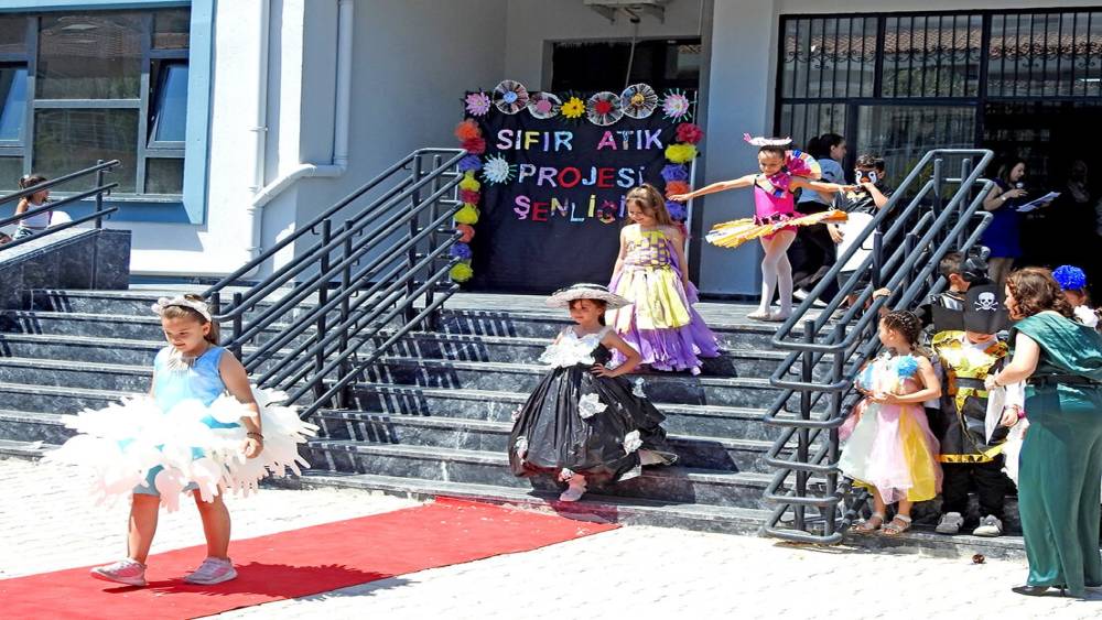 Konuşmaların ardından, okulun yapımında emeği geçen kişi ve kurumlara teşekkür edildi. Etkinliğin en dikkat çeken bölümü ise öğrencilerin geri dönüştürülebilir malzemelerle hazırladığı kıyafetlerle gerçekleştirdiği renkli defile oldu. Katılımcıların büyük beğenisini toplayan defile, çevre duyarlılığına görsel bir mesaj verdi.