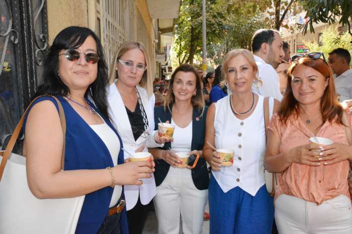 600 kişilik aşure dağıttıklarını ifade eden CHP Manisa İl Kadın Kolları Başkanı Gülbahar Tahmilci, “CHP İl Kadın Kolları, Şehzadeler ve Yunusemre İlçe Kadın Kolları olarak Muharrem ayı nedeniyle aşure hayrı gerçekleştirdik. Türkiye Cumhuriyeti’mizin kurucusu Gazi Mustafa Kemal Atatürk’ü, silah arkadaşlarını, şehitlerimizi bu aşure hayrıyla saygılıyla anmak istedik. Aşure hayrımıza destek olan herkese teşekkür ediyoruz” dedi. Belgin Koçak