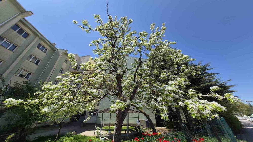 Eskişehir’in Çankaya Mahallesi’nde çiçek açan armut ağacının oluşturduğu güzel görüntü görenlerin dikkatini çekiyor.