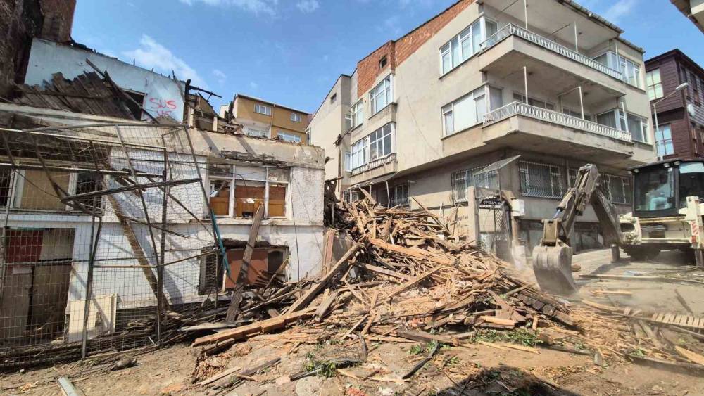 Çökme tehlikesi bulunan metruk bina yıkılıyor