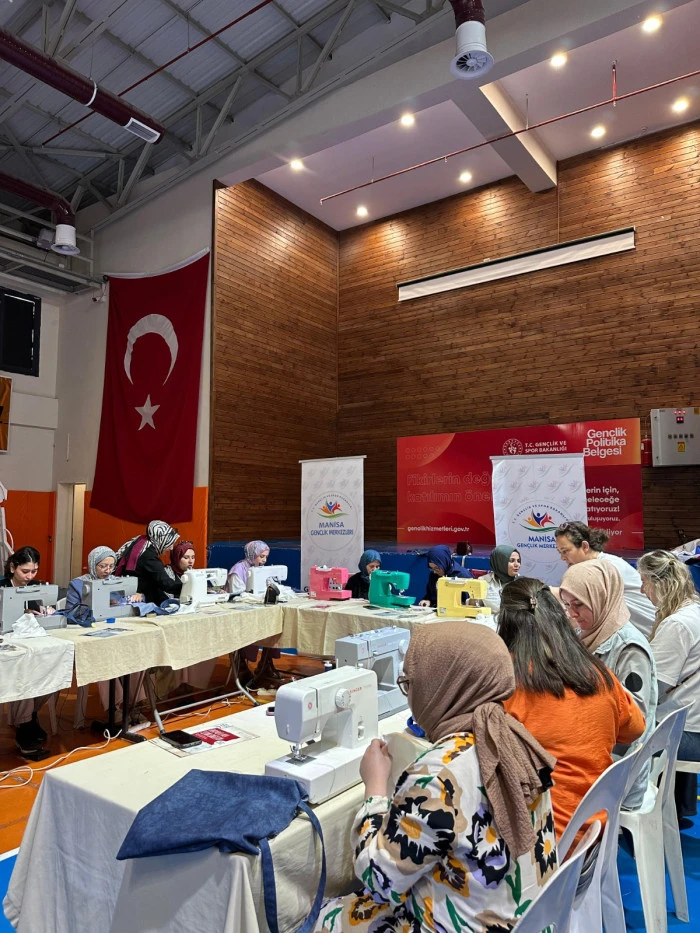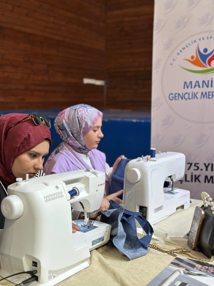 Manisa Gençlik Spor İl Müdürlüğü 75. Yıl Gençlik Merkezi bünyesinde düzenlenen El Sanatları Atölyesi etkinliğinde kumaş atıkları, kemer parçaları, kağıt torbalar, kullanılmayan giysiler çantaya dönüştü. Gençler geri dönüşüm bilinci kazanırken, yaratıcılıklarını da geliştirerek benzersiz ürünler ortaya koydu.